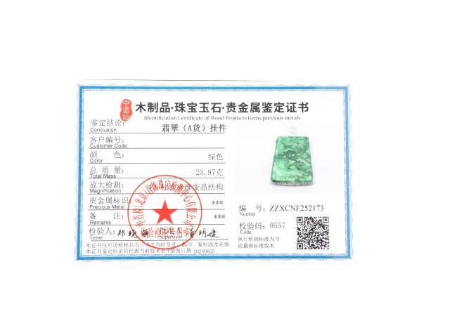 附权威机构翡翠(A货)鉴定证书