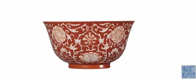 作者:644 清道光 珊瑚红地留白缠枝花卉纹碗